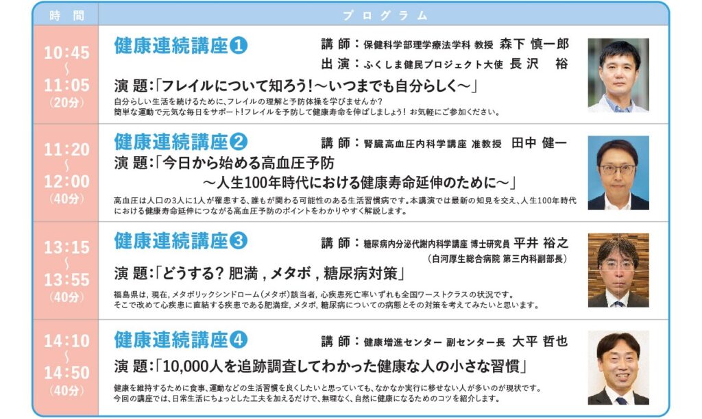 福島県立医科大学の各分野の専門家が講師を務めます。健康と向き合う知識を得るために、ぜひご参加ください。