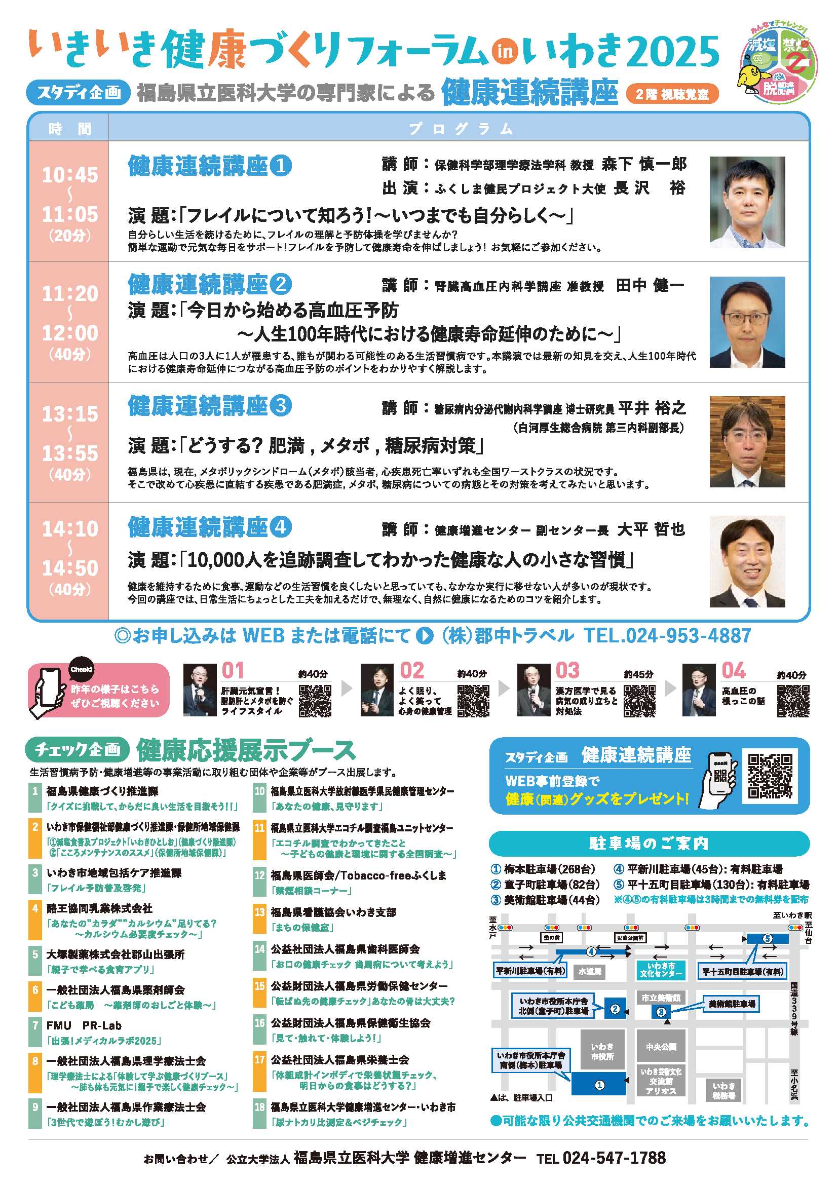 福島県立医科大学の各分野の専門家が講師を務めます。健康と向き合う知識を得るために、ぜひご参加ください。